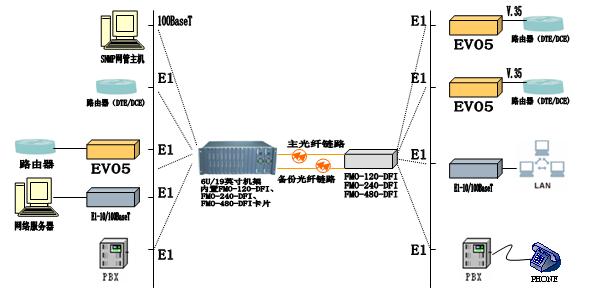 可选配一路100M线速以太网接口、异步数据(RS232)用户的辅助通道及公务电话接口;